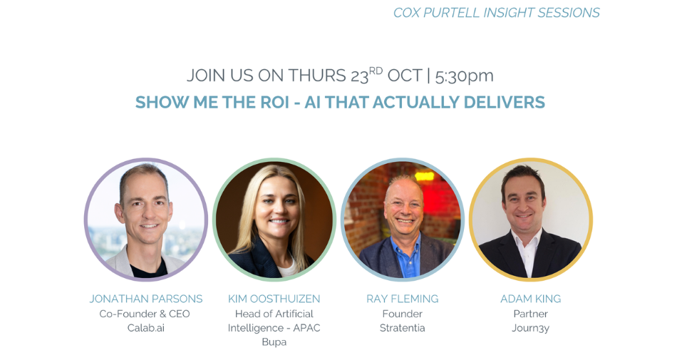 The AI hype machine is still going strong. Every week another shiny new tool promises to “revolutionise” the way we work. But for executives who must sign off the budget, hype isn’t enough. They want one thing, proof it works. The problem is that too many AI initiatives fizzle out somewhere between a flashy demo and a confusing post-implementation report. Globally, and especially in Australia, adoption has been slower than expected, and failure rates higher than anyone would like to admit. It’s not because AI lacks potential. It’s because many organisations buy into a vision without a clear path to measurable ROI. Too often, vendors overpromise. Internal teams under-plan. And executives are left holding the bill for something that hasn’t delivered the promised value. The ROI Gap The gap between AI’s promise and its performance usually boils down to four things: · Poor adoption strategies – rolling out technology without clear business objectives. · Lack of measurable ROI metrics – impressive dashboards don’t always equal value. · Regulatory and privacy roadblocks – legal complexity slows down what should be fast wins. · Change fatigue in the workforce – the human side of AI rollouts gets ignored. In short, success isn’t about finding the fanciest AI solution. It’s about implementing the right solution well. From Concept to Commercial Impact This October, we’re bringing together some of the most experienced operators in the AI space for a brutally practical conversation on what works. Our next Cox Purtell Insight Session: “Show Me the ROI – AI That Actually Delivers” is built for executives, not engineers. No hype. No magic beans. Just straight talk from leaders who’ve implemented AI at scale and can tell you where the real wins (and landmines) are. Our panel includes senior leaders with deep experience across leading complex AI rollouts inside massive organisations and know exactly how to make these projects stick. You’ll hear candid insights on: · Strategic & Responsible Adoption: Build vs buy decisions and what to consider. · Governance & Regulations: Navigating regulatory and privacy hurdles without losing momentum. · Adoption & Workforce Impacts: Rolling out without breaking everything else. · Measuring ROI: Cost savings, revenue growth, customer engagement, and other metrics that matter Not Another AI Sales Pitch This isn’t a “how to use ChatGPT” tutorial or a vendor parade. It’s a space for decision-makers—C-suite leaders, HR directors, CFOs, heads of department—to unpack how AI can be evaluated, measured, and adopted responsibly to drive genuine business outcomes. And because we believe in making a real-world impact, $20 from every attendee ticket will go to The Kids’ Cancer Project, helping fund vital research across Australia. Join Us · Event: Show Me the ROI – AI That Actually Delivers · Date: Thursday, 24 October 2025 · Time: 5:30 PM – 8 PM · Location: Sydney CBD · Register your interest here and join a conversation that cuts through the noise. Because in 2025, AI doesn’t just need to be clever. It needs to deliver.